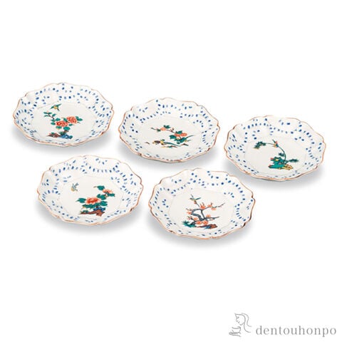 【九谷焼】 皿揃 花鳥絵変わり 5.5号 5枚セット