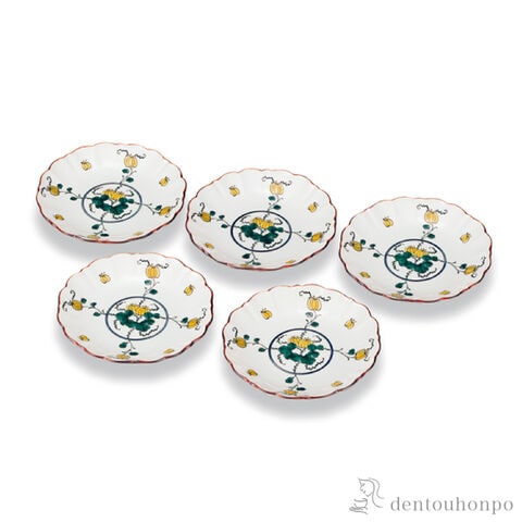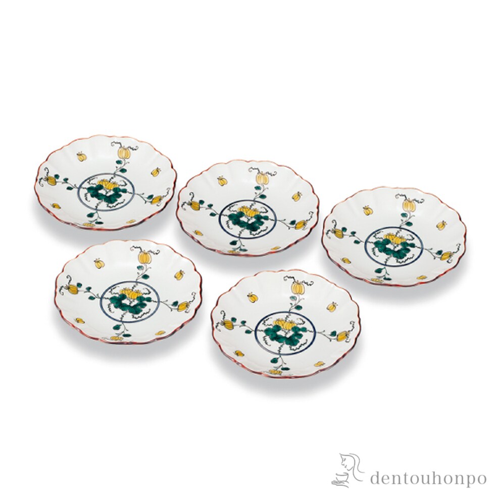 皿揃 色絵瓜文 4.5号 5枚セット ( 和食器セット お皿 揃える 食器 和食 九谷焼 結婚 出産 内祝い 引き出物 金婚式 誕生日プレゼント 還暦祝い 古希 喜寿 )