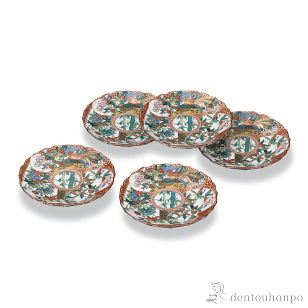 皿揃 庄三風 4.5号 5枚セット ( 和食器セット お皿 揃える 食器 和食 九谷焼 結婚 出産 内祝い 引き出物 金婚式 誕生日プレゼント 還暦祝い 古希 喜寿 )