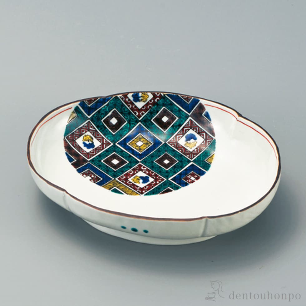 【九谷焼】 型打ち皿 石畳