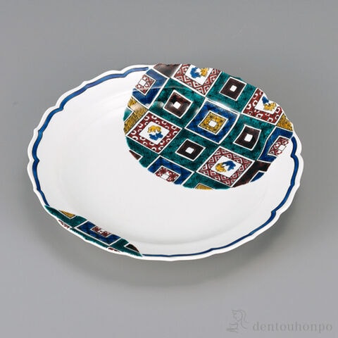 【九谷焼】 盛皿 石畳の図 8.3号