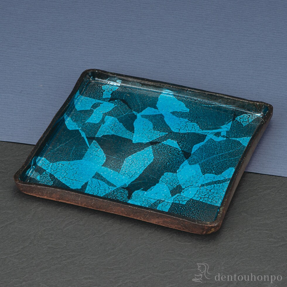 【九谷焼】 角皿 トルコ釉銀彩
