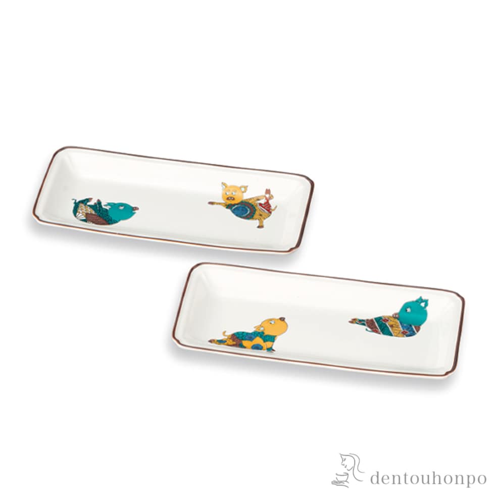 皿 アニマルヨギー 8号 ペア ( 盛皿 プレート テーブルウェア 食器 パーティー 九谷焼 結婚 出産 内祝い 引き出物 金婚式 誕生日プレゼント 還暦祝い 古希 )