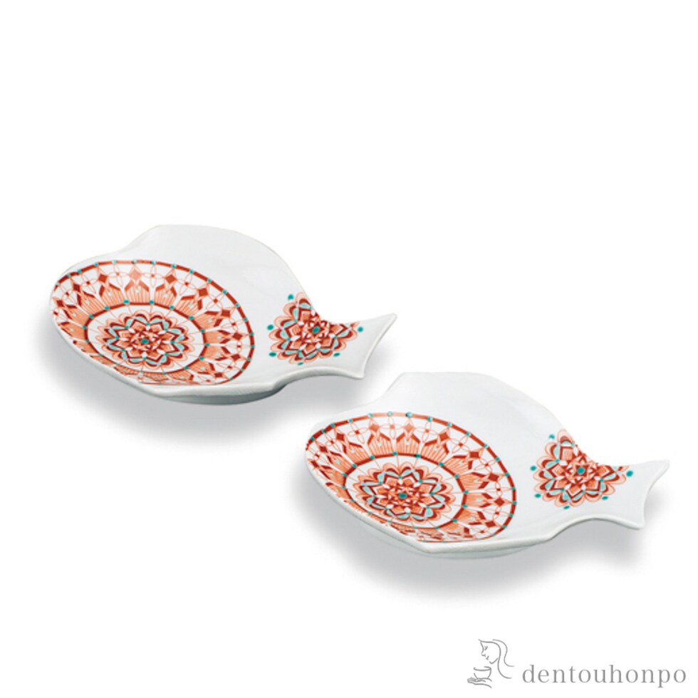 型打ち皿 赤絵 3.8号 ペア ( プレート 醤油皿 豆皿 和食 洋食 九谷焼 結婚 出産 内祝い 引き出物 金婚式 誕生日プレゼント 還暦祝い 古希 喜寿 米寿 )