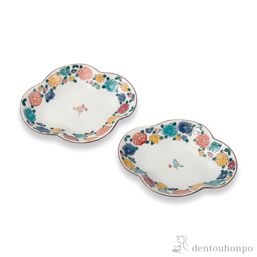 皿 小鳥とマリーゴールド 6号 ペア ( プレート おつまみ 料理 和食 洋食 九谷焼 結婚 出産 内祝い 引き出物 金婚式 誕生日プレゼント 還暦祝い 古希 )