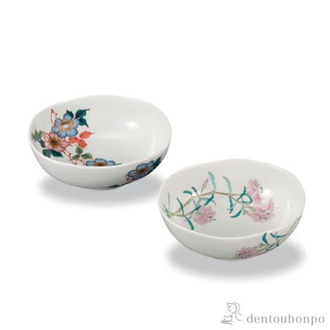 鉢 草花2種 4.6号 ペア ( 和食 食器 おつまみ 朝食 料理 九谷焼 結婚 出産 内祝い 引き出物 金婚式 誕生日プレゼント 還暦祝い 古希 喜寿 米寿 退職 )