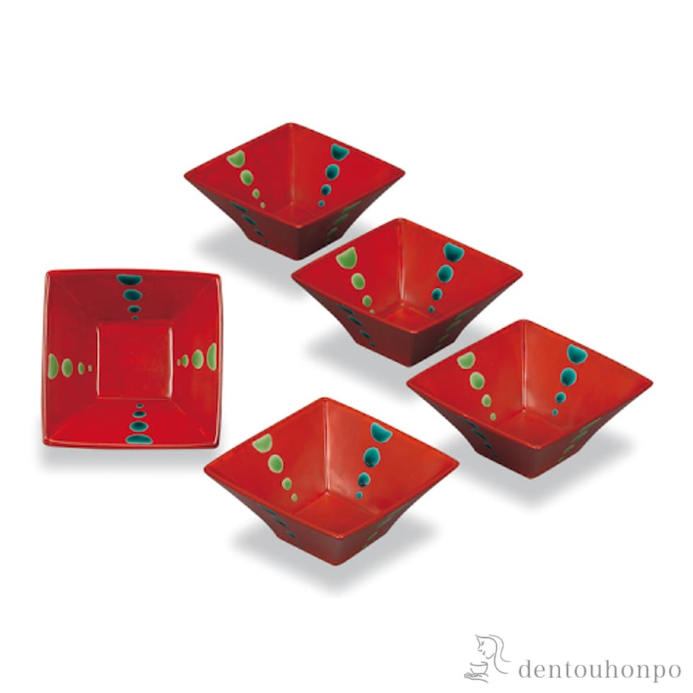 小鉢揃 朱巻点々 4.7号 5枚セット ( 和食 食器 おつまみ 朝食 料理 九谷焼 結婚 出産 内祝い 引き出物 金婚式 誕生日プレゼント 還暦祝い 古希 喜寿 )