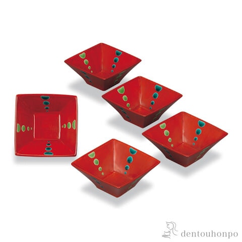 【九谷焼】 小鉢揃 朱巻点々 4.7号 5枚セット