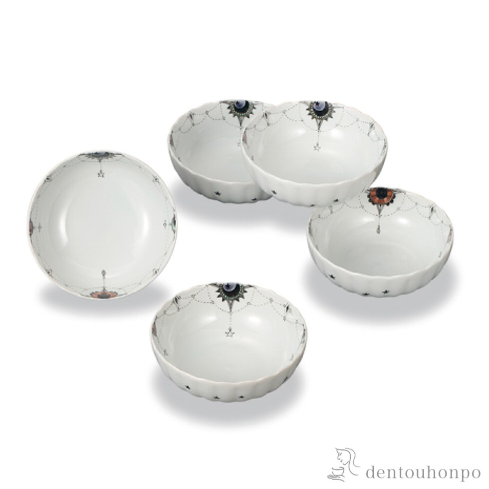小鉢揃 月と太陽 4.5号 5枚セット ( 和食 食器 おつまみ 朝食 料理 九谷焼 結婚 出産 内祝い 引き出物 金婚式 誕生日プレゼント 還暦祝い 古希 喜寿 )