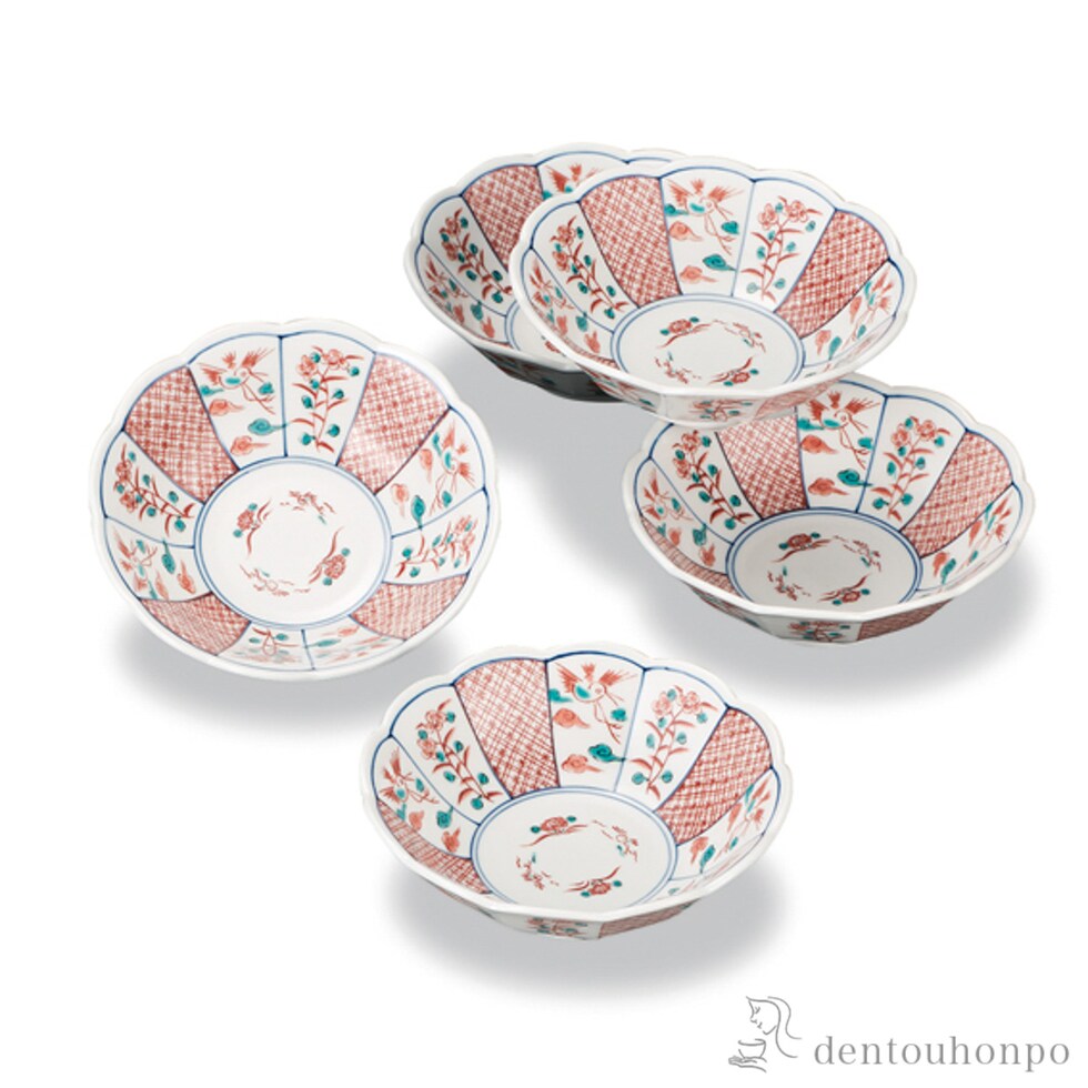 小鉢揃 赤絵小紋 5号 5枚セット ( 和食 食器 おつまみ 朝食 料理 九谷焼 結婚 出産 内祝い 引き出物 金婚式 誕生日プレゼント 還暦祝い 古希 喜寿 米寿 退職 )