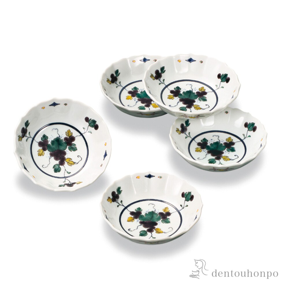 小鉢揃 ぶどう 3.8号 5枚セット ( 和食 食器 おつまみ 朝食 料理 九谷焼 結婚 出産 内祝い 引き出物 金婚式 誕生日プレゼント 還暦祝い 古希 喜寿 米寿 退職 )