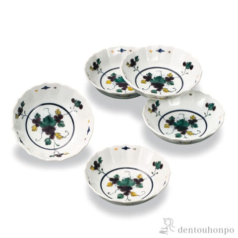 【九谷焼】 小鉢揃 ぶどう 3.8号 5枚セット