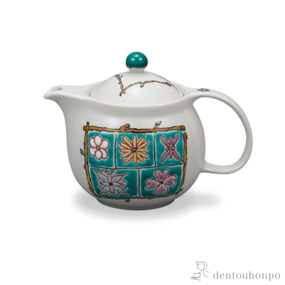ポット急須 フラワーBOX グリーン 茶こし付 ( ティーポット お茶 煎茶 日本茶 おすすめ 九谷焼 結婚 出産 内祝い 引き出物 金婚式 誕生日プレゼント )