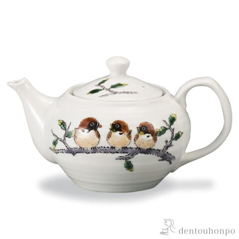 【九谷焼】 ポット急須 丸々雀 茶こし付