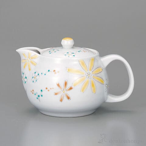 ポット急須 色絵花文 黄 茶こし付 ( ティーポット お茶 煎茶 日本茶 おすすめ 九谷焼 結婚 出産 内祝い 引き出物 金婚式 誕生日プレゼント 還暦祝い )