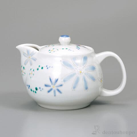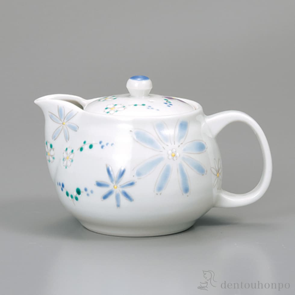 ポット急須 色絵花文 紺 茶こし付 ( ティーポット お茶 煎茶 日本茶 おすすめ 九谷焼 結婚 出産 内祝い 引き出物 金婚式 誕生日プレゼント 還暦祝い )