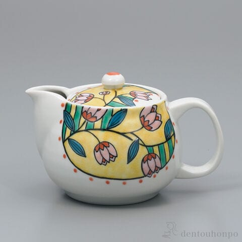 【九谷焼】 ポット急須 チューリップ 茶こし付