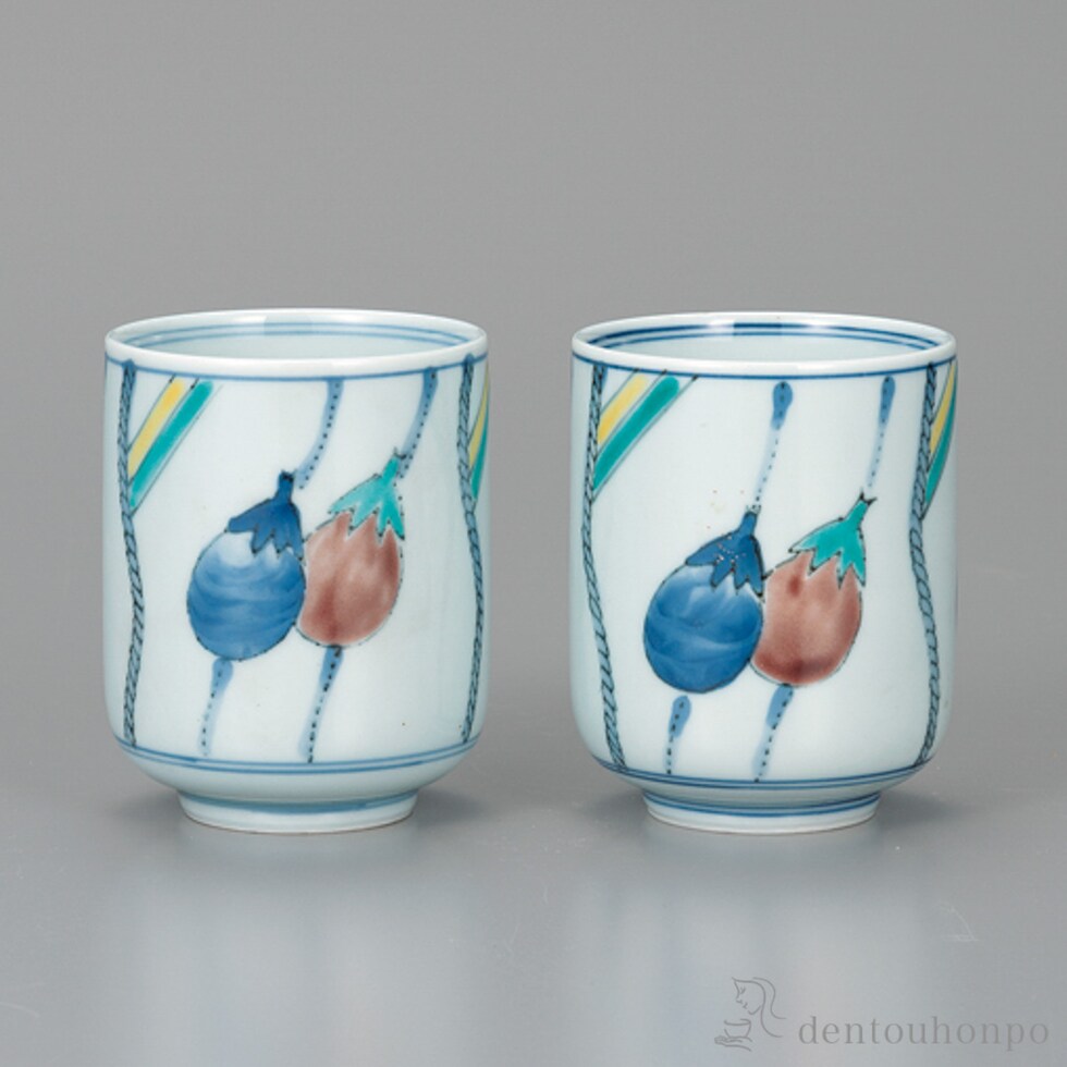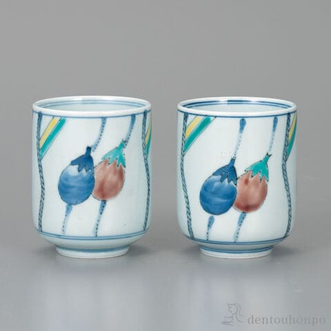 【九谷焼】 組湯呑 色絵なす ペア