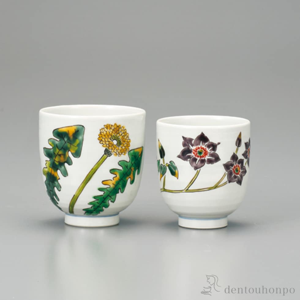 【九谷焼】 組湯呑 タンポポ 桔梗 ペア