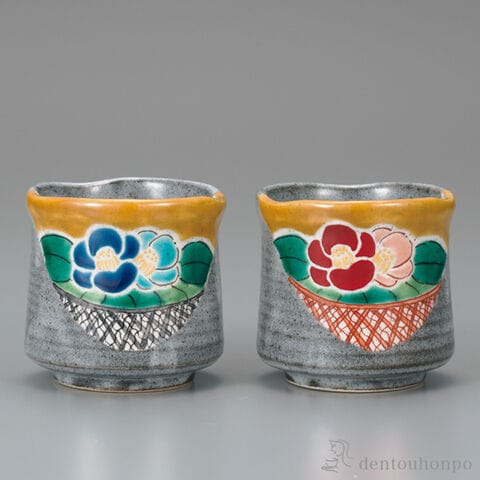 組湯呑 吉田屋風椿 ペア ( 湯呑み 湯のみ セット 湯飲み おすすめ 九谷焼 結婚 出産 内祝い 引き出物 金婚式 誕生日プレゼント 還暦祝い 古希 喜寿 米寿 )