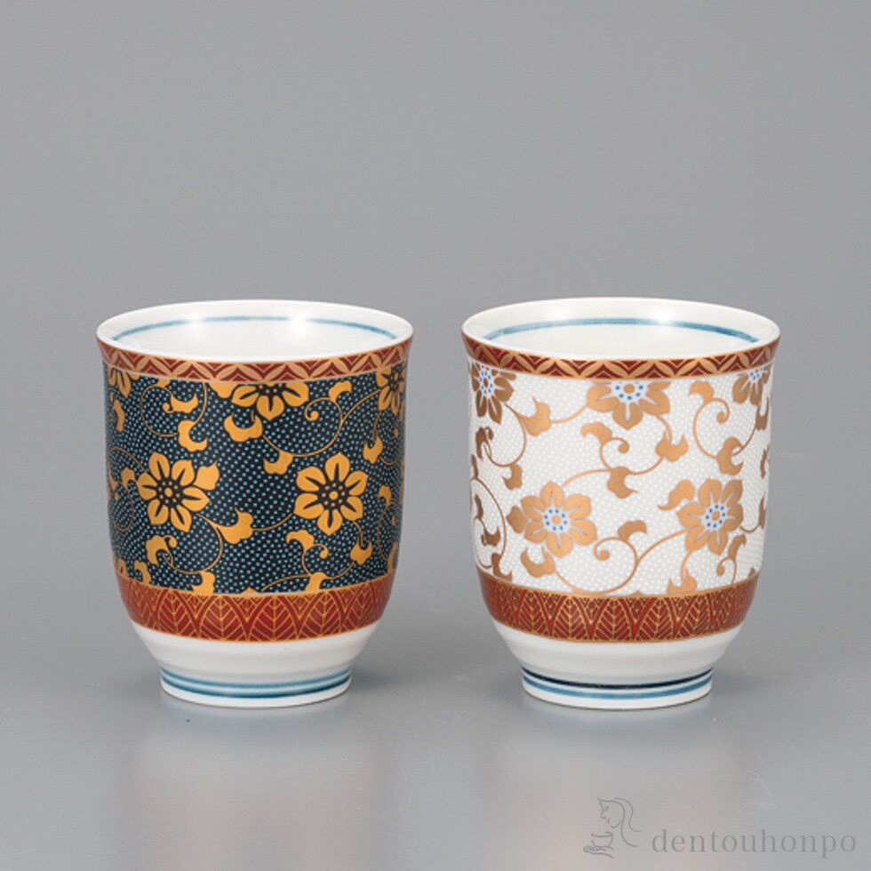 組湯呑 鉄仙唐草 ペア ( 湯呑み 湯のみ セット 湯飲み おすすめ 九谷焼 結婚 出産 内祝い 引き出物 金婚式 誕生日プレゼント 還暦祝い 古希 喜寿 米寿 )