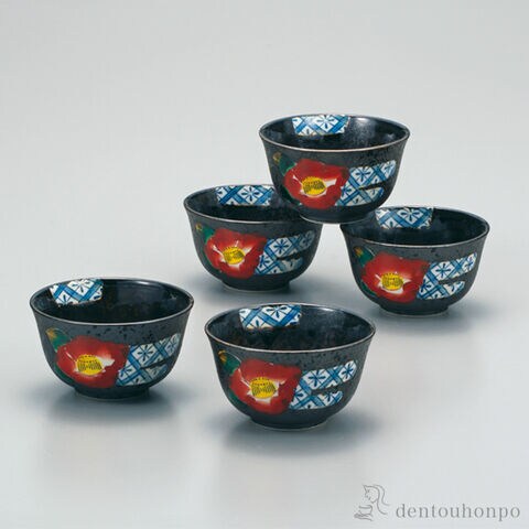 【九谷焼】 汲出揃 黒紬山茶花 5客セット