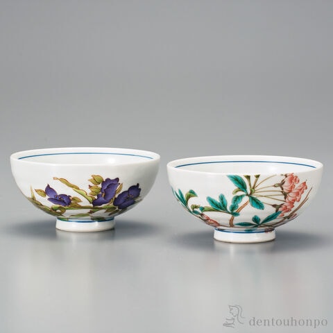 組飯碗 花紋 ペア ( ギフト プレゼント ご飯茶碗 結婚祝い おすすめ 九谷焼 結婚 出産 内祝い 引き出物 金婚式 誕生日プレゼント 還暦祝い 古希 喜寿 米寿 )