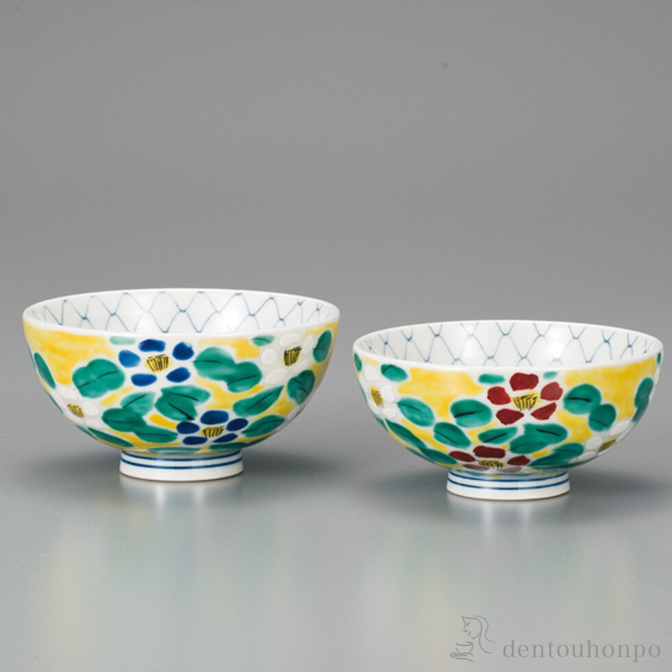 【九谷焼】 組飯碗 吉田屋風花文 ペア