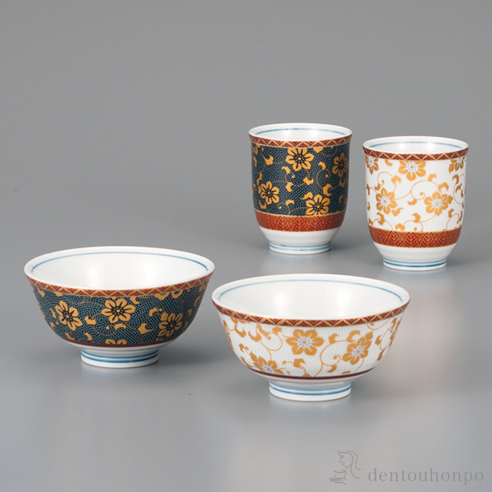 夫婦揃 鉄仙唐草 ペアセット ( 夫婦茶碗 夫婦湯呑 セット ご飯茶碗 湯飲み 九谷焼 結婚 出産 内祝い 引き出物 金婚式 誕生日プレゼント 還暦祝い 古希 )