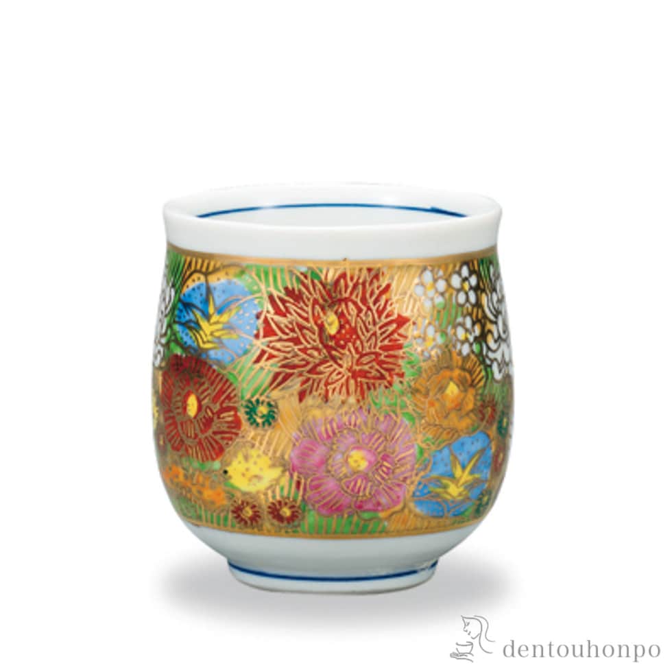 湯呑 金花詰 ( 湯のみ ゆのみ 湯飲み カップ プレゼント 九谷焼 結婚 出産 内祝い 引き出物 金婚式 誕生日プレゼント 還暦祝い 古希 喜寿 米寿 退職 )