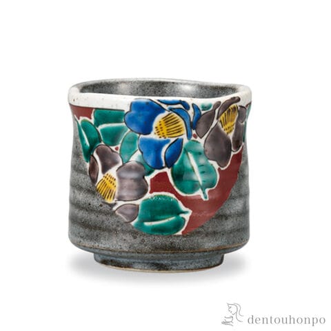 【九谷焼】 湯呑 吉田屋風山茶花 赤