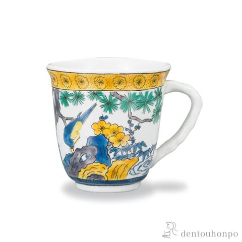 マグカップ 古九谷風花鳥 ( プレゼント デザイン マグ オリジナル タンブラー 九谷焼 結婚 出産 内祝い 引き出物 金婚式 誕生日プレゼント 還暦祝い )
