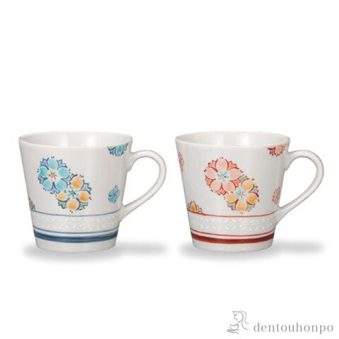 マグカップ 白七宝桜文 ペア ( プレゼント デザイン マグ オリジナル タンブラー 九谷焼 結婚 出産 内祝い 引き出物 金婚式 誕生日プレゼント 還暦祝い 古希 )