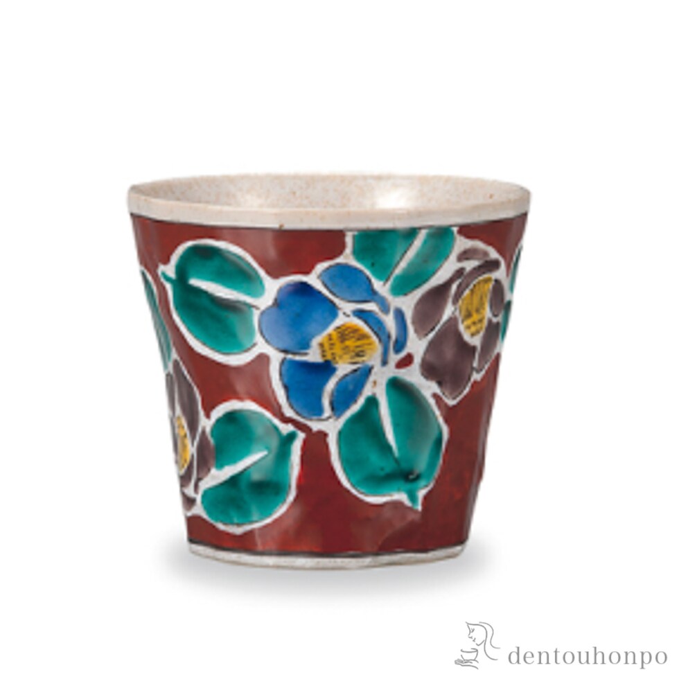 【九谷焼】 フリーカップ 吉田屋山茶花 赤