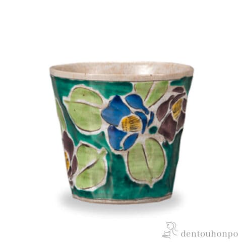 【九谷焼】 フリーカップ 吉田屋山茶花 青
