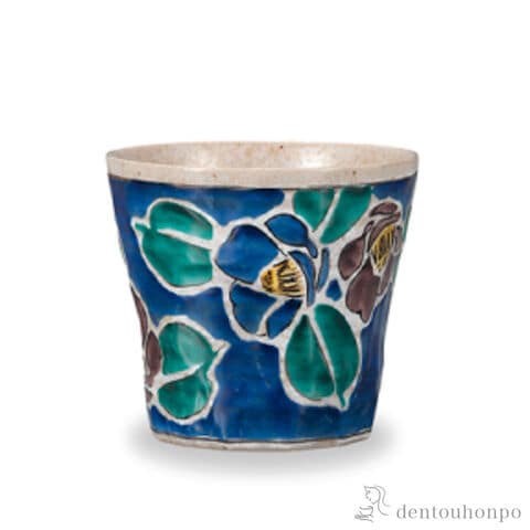 【九谷焼】 フリーカップ 吉田屋山茶花 紺