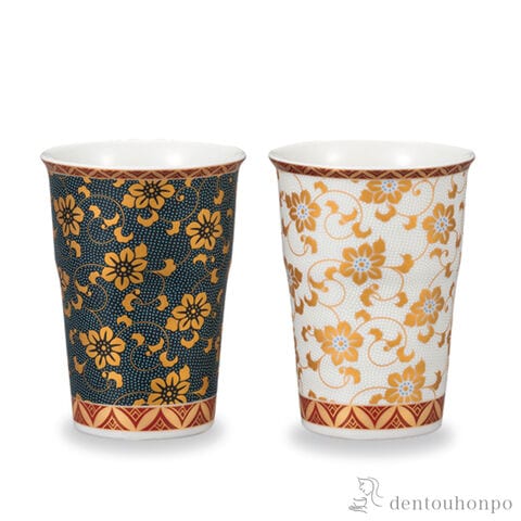 フリーカップ 鉄仙唐草 ペア ( 焼酎グラス ビアカップ ビールグラス フリーカップ グラス 九谷焼 結婚 出産 内祝い 引き出物 金婚式 誕生日プレゼント )