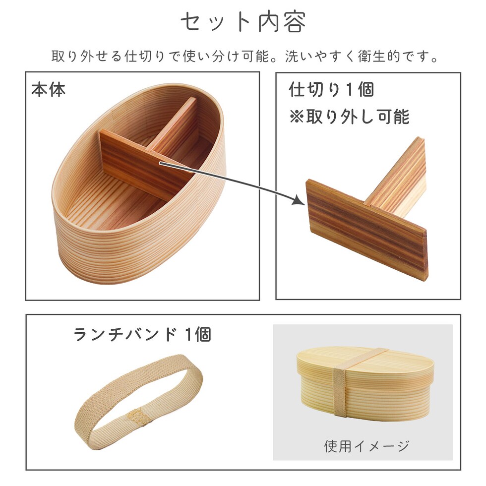 【Okome no otomo】 木製 曲げわっぱ 弁当箱 レンジ対応・食洗機対応 400ml 仕切り・ランチバンド付き