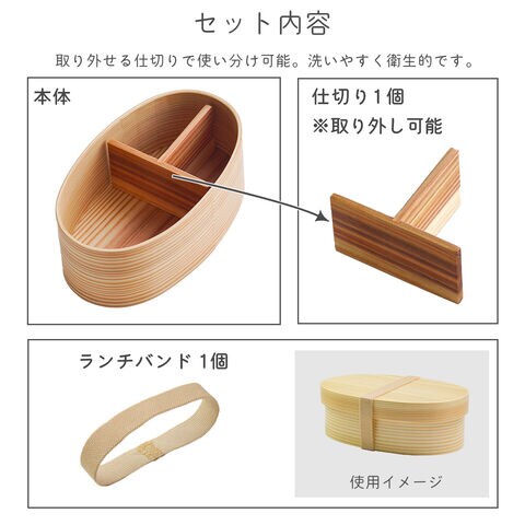 備考:ランチバンド、木製仕切りが付属します。 電子レンジ(500Wで30秒程度):○、食器洗浄機:○※仕切り・蓋もレンジ・食洗機対応です。