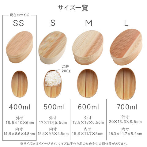 ・400mlサイズ・・・女性・お子様、ご飯やおにぎりだけ、おかずだけを詰める用に。
