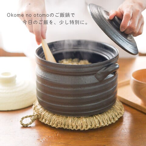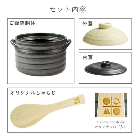 IH対応ご飯鍋 二重蓋 3合炊き Okome no otomo オリジナルしゃもじ付き ( ご飯鍋 土鍋 ごはん 土鍋ご飯 白米 Okome no otomo 結婚 出産 内祝い 引き出物 )