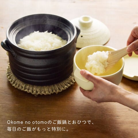 「お米を美味しく食べる」をコンセプトとしたOkome no otomoのご飯鍋&おひつのセット。IH対応の炊飯土鍋で極上のご飯を炊き、おひつの調湿力で残りご飯まで美味しく食べる。「お米を最高に美味しく食べる」ために生まれた、炊飯から保存までを叶える、まさに「お米のお供」セットです。ブランドロゴ入りしゃもじ付き。