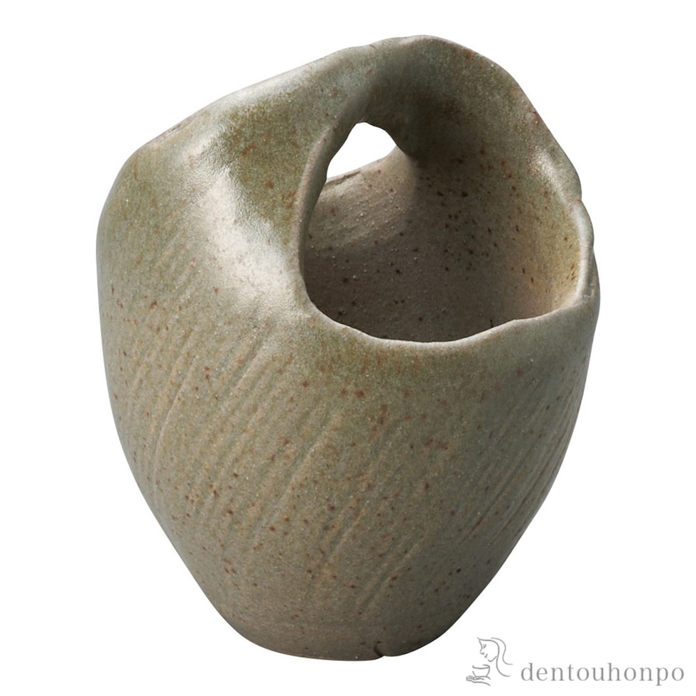 【信楽焼】 花瓶 回廊 灰緑 小