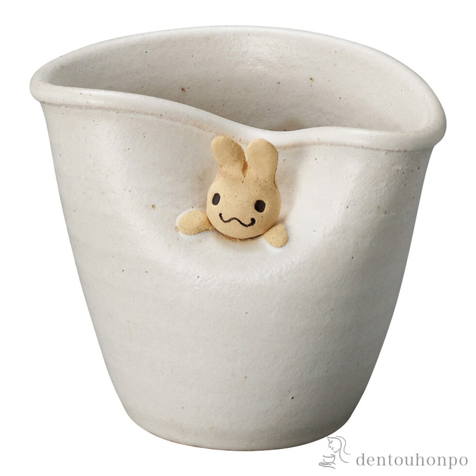 かわいいうさぎが顔を出している花瓶です。手作りだからこそ表現できる、柔らかい曲線と優しい形に土の質感。短めに剪定して活けた花や、フローラルフォームを使ったアレンジ、プリザーブドフラワーを飾るのにもおすすめです。