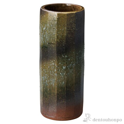 【信楽焼】 花瓶 面取寸胴 ビードロ窯変