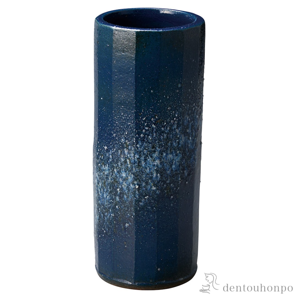 【信楽焼】 花瓶 面取寸胴 藍窯変