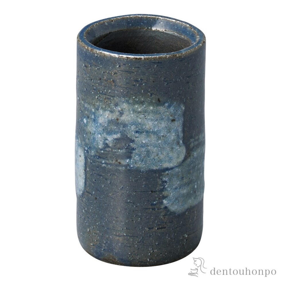 【信楽焼】 花瓶 青釉白刷毛 筒