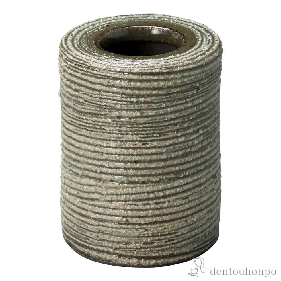 【信楽焼】 花瓶 緑釉白刷毛 千筋