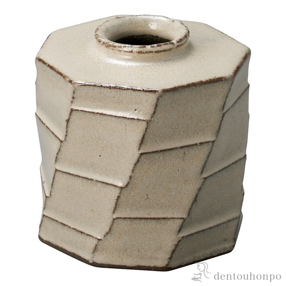 ミニ花瓶 グレージュ 面取 大 ( へちもん 木札名入れ有料 一輪挿し おしゃれ 花器 フラワーベース かわいい 信楽焼 結婚 出産 内祝い 引き出物 金婚式 )