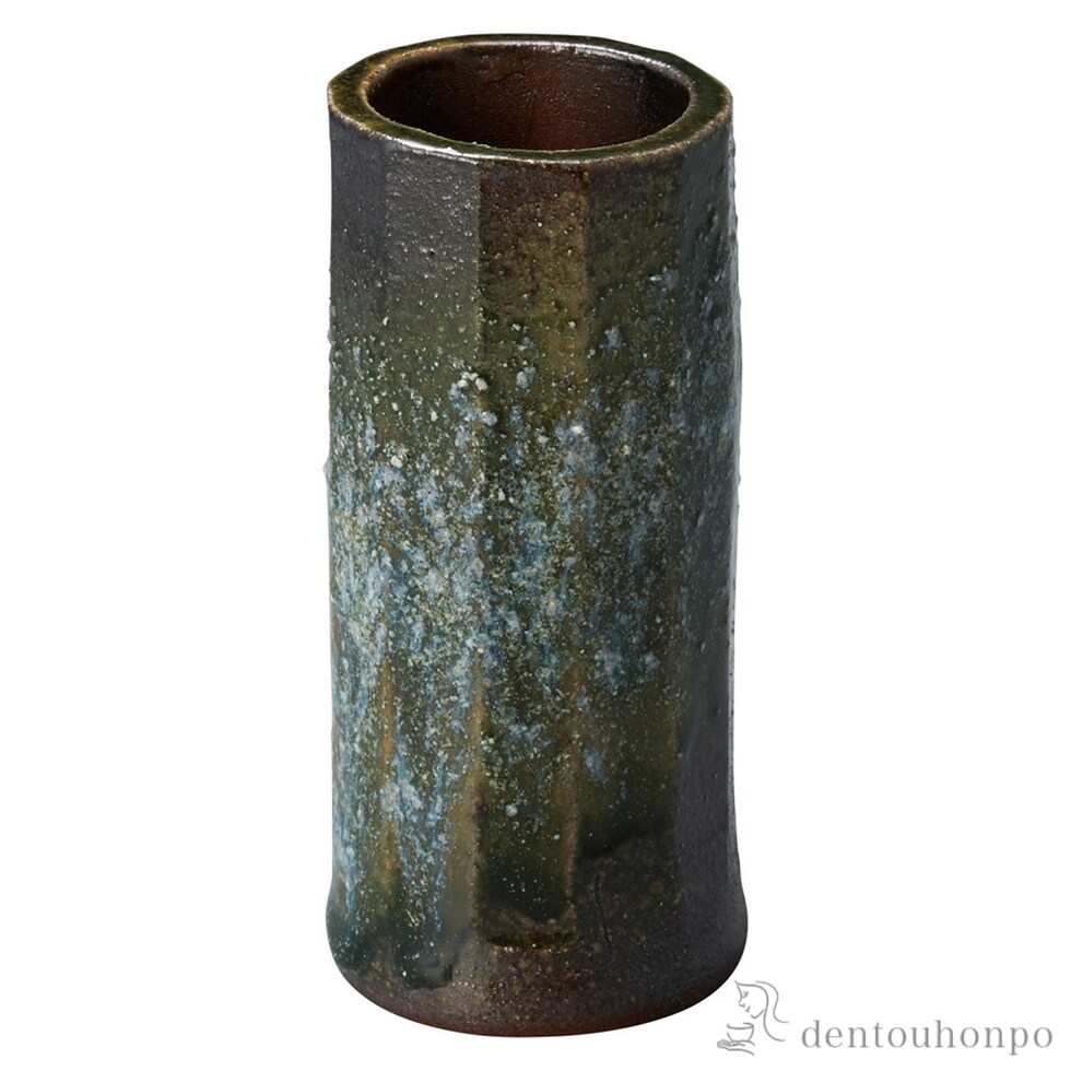 【信楽焼】 花瓶 面取寸胴 ビードロ窯変 大